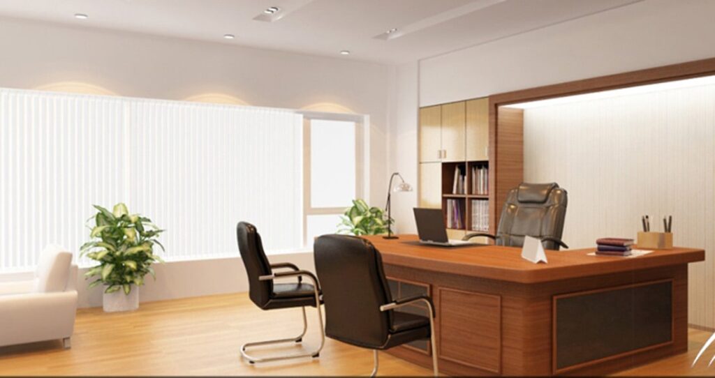 Đối với phòng lãnh đạo, giám đốc nên thiết kế tách riêng ra đối với các phòng nhân viên, có màu sắc đậm hơn các phòng còn lại thể hiện sự chín chắn và quyền uy.